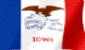 "Iowa" is in red just below the streamers. All schools must fly the state flag