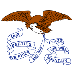 flag. The motto reads "Our liberties we prize and our rights we will maintain."