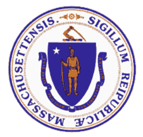 representativo al escudo de armas del estado con la palabras "Sigillum Reipublicae Massachusettensis"