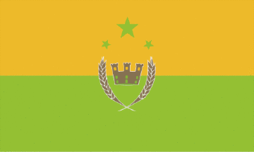 It is a yellow over light green horizontal bicolor with a large emblem over all.