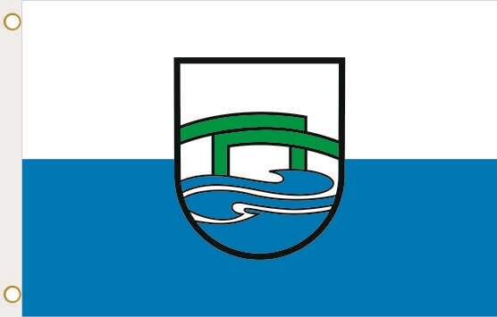 flag adoption date unknown; it uses the colors: white and blue. Blazon as translated: "In silver, on a