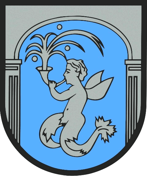 year. As found on wikipedia: "In a blue shield, silver, under a profiled fountain arch adjoining on all