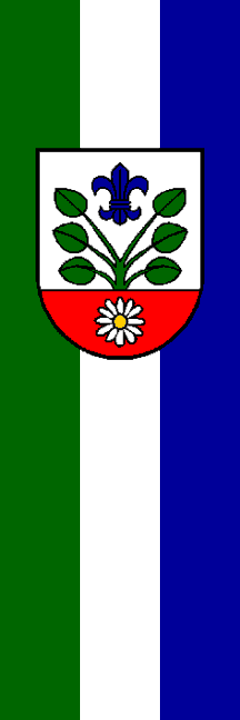 | Description of flag: | three stripes, green-white-blue, with coat-of-arms |
