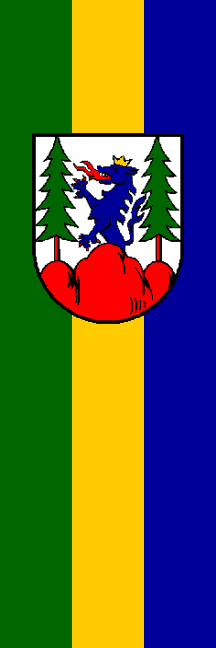 | Description of flag: | three stripes, green-yellow-blue, with coat-of-arms |