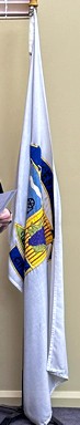 The flag of the Cessnock City Council is white with the city council crest on it: