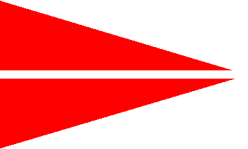 The burgee of TCBYC is red with a thin horizontal white stripe in the middle.
