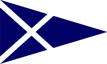 Burgee: Pennant circa 2:3 (flipped photo). Blue field charged with a white St. Andrew’s cross.