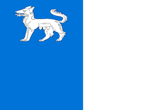 That is, a vertically divided blue-white flag with a white Roman she-wolf in the upper part of the blue stripe.
