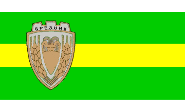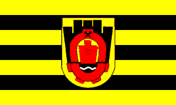 A green flag with white bands across the top and bottom, and a yellow stripe