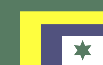 Flag made of four rectangles nested into each other toward the lower fly, green, yellow, blue, white, with a green star in the smallest white triangle in the lower fly.