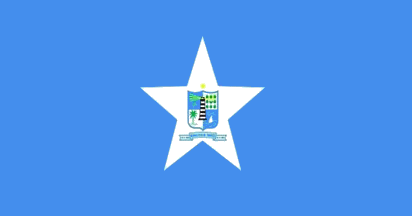 A blue flag, with the municipal arms on a centred white five-pointed star.