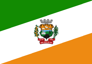 An ascending west-east diagonal tricolour, green-white-orange, bearing the municipal arms in the centre.
