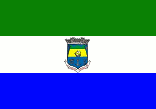 A horizontal tricolour, green-white-blue, with the municipal arms in the centre.