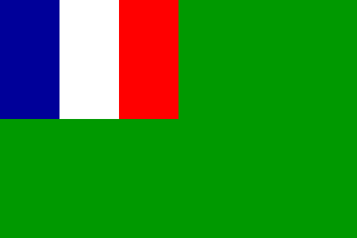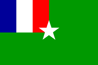 Fuligni goes on to note the revival of the Counani idea in Paris in the 1990s with a self-described "Constitutional Executive in Exile of the Free State of the Counani," a pseudo-state ostensibly intended to challenge Brazilian treatment of the Indians of Amapa' and environmental damage. This group's flag is the same as the first flag of Independent Guiana--green with the French tricolor in the hoist--with the addition of the white star from the later flags on the center.