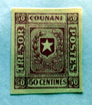 http://www.ebay.ca/itm/Local-Post-Free-State-Of-COUNANI-French-Guyana-Brazil-One-Stamp-Rare-/221390906773 (image archived). It shows the arms, rather than the flag, though, which indeed show a red shield with a white five-pointed star.