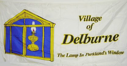 A new flag for Delburne, Alberta, consists of the logo centered on a white