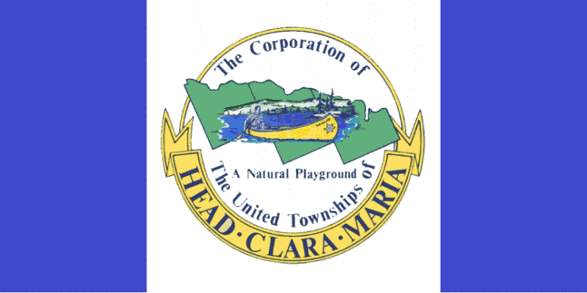 The flag of the United Townships of Head, Clara and Maria, Ontario, consists