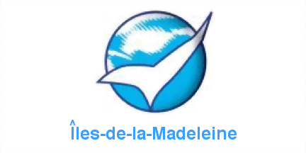 The flag of Les Îles-de-la-Madeleine is white with the municipal logo and,