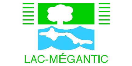 The website of the MRC of Le Granit shows the logo of Lac-Mégantic, which I have modified (lighter shades and capital letters) to match the real flag shown on the photo.