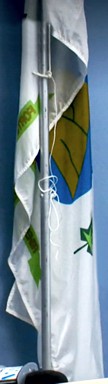 The flag of the Municipality of Mont-Carmel in MRC de Kamouraska, Quebec, is