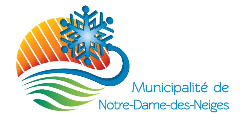 The flag of the Municipality of Notre-Dame-des-Neiges in MRC Les Basques, Quebec, is white with its logo on it: