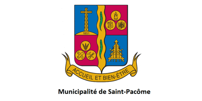 The flag of the Municipality of Saint-Pacôme in MRC de Kamouraska, Quebec,