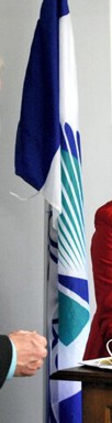 Flag is a blue/white/blue Canadian pale, with the county logo in the center.