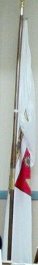 Or, moving from the point, charged with three slopes of Azure and skis placed in saltire, accompanied on the dexter, by a