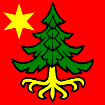 Gules a Fir Tree Vert trunked and eradicated Or and in chief dexter a Mullet of