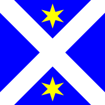Azure, a saltire Argent between two Mullets [of Six] Or