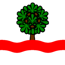 Argent a Chestnut Tree Maroon leaved Vert issuant from a Bar wavy Gules.