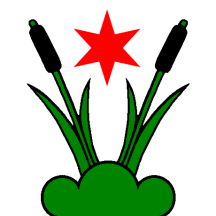 Argent a Mullet Gules between two Reed plants Vert fructed Sable and with