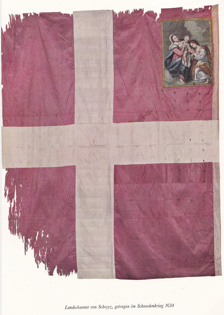 Banner of Schwyz, carried during the Burgundian Wars (1474–77), Zwickelbild (source).