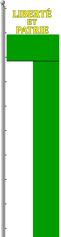 Per fess argent and vert, in chief the motto "Liberté et Patrie" or, fimbriated sable.