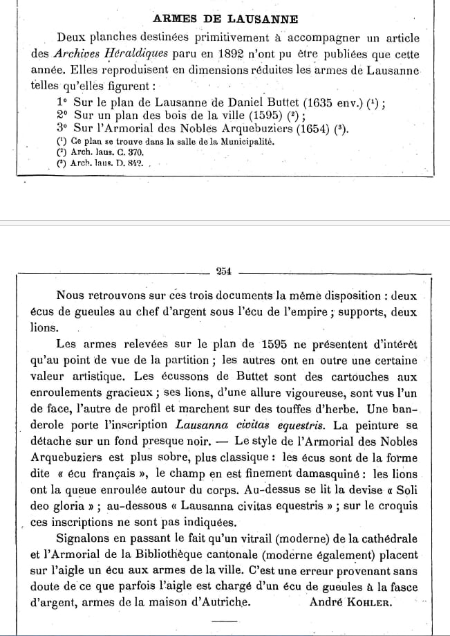When I was in Lausanne, I saw these arms in several places, and wondered what the status was, so thanks for informing me. I didn't see the flag flying anywhere – do you know of any examples of its use?