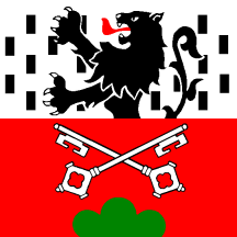 Gules, in base a Coupeaux Vert, two Keys saltirewise Argent.