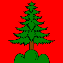 Gules, issuant from Coupeaux Vert a Pine Tree of the same trunked proper.