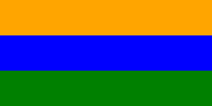 The flag of Curumaní is horizontally divided orange-blue-green.