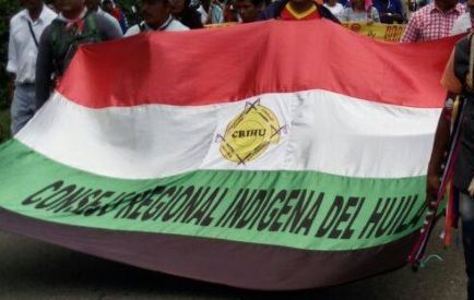 This variant depicts text reading CONSEJO REGIONAL INDIGENA DEL HUILA (Indigenous Regional Council of Huila) over green.