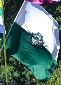 The organization has a strong focus on indigenous rights in Vichada and Guainía. Its flag is green over blue. Centered on it is the organization's coat of arms.