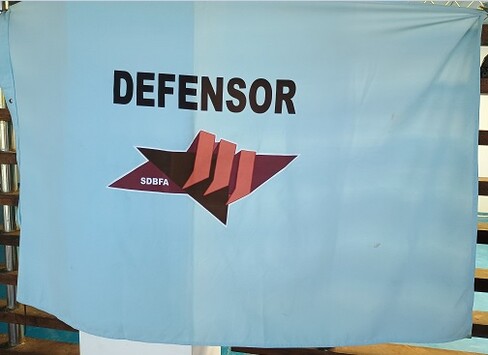 Notice that the war flag features on top "ESCUELA MILITAR DE SUBOFICIALES" [MILITARY SCHOOL OF NON COMMISSIONED OFFICERS] and below the initials "S.S." meaning "Sargento Segundo" [Second Sargeant] and "INOCENCIO CHINCÁ" (the latter, the name of the soldier honoured).