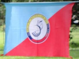 Description of the flag: Horizontally divided flag, with upper side divided into two equal stripes (bootom left green, top right, red). On the obverse the Coat of Arms is located on the green part of the flag.