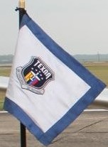 It seems that Flight Instructors of the "Escuela Internacional de Ala Fija, ESIAF" (International Fixed Wing School) display a pennant featuring the aircraft's patch on during operations and training missions and it is a white horizontal background with a blue stripe around the edges with the patch in the middle.