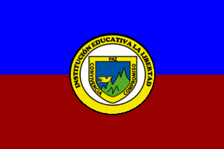 On photos taken during the "Intercolegiados" sports event, 17 July 2008, the flag is horizontally divided white-blue with the emblem of the institute in the middle.
