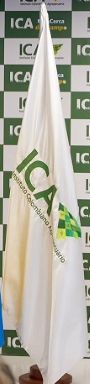 (a white rectangular flag with the logo in the middle).