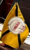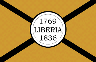 The flag was designed by Vera Blandón de Rodríguez and adopted on 4 September 1969, taking inspiration from the crossroads in the center of the city that have distinguished it as an important development hub in the country. Over a golden field representing corn, rice, and sorghum when ripe, there is a black "X" shape symbolizing it as the crossroads between, Rivas, Esparza, and Nicoya, defining Liberia's identity greatly especially in the past. In the center is a white circle, reading in its outer ring: "1769 - 1836" in red letters, the year it was founded and the year it became a city, respectively. In the center of the white circle is "LIBERIA", also in red.
