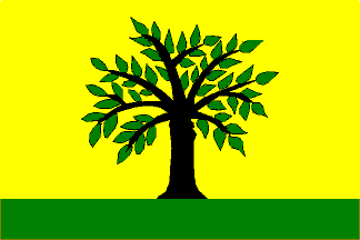 The flag is yellow over green (5:1) with green willow with black trunck.