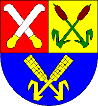 Coat of Arms: per fess 1) per pale or two bulrushes in saltire; gules two knives