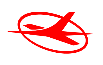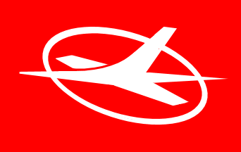 See this image; red field, white logo i.e. stylized aircraft flying