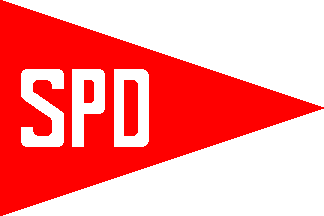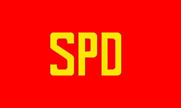 As I already pointed out when dealing with CDU party flags, arising 'logomania' around 1970 led to a decreasing use of proper flags. Public Relations departments devised new logos for almost every new campaign; these logos usually could be put on flags as well. So it is difficult to decide when was the 1961 pattern replaced by a different one. Probably around 1980 the new pattern came into being: thicker white letters 'SPD' on red. This is in use up to now. M. Schmöger, 6 October 2001